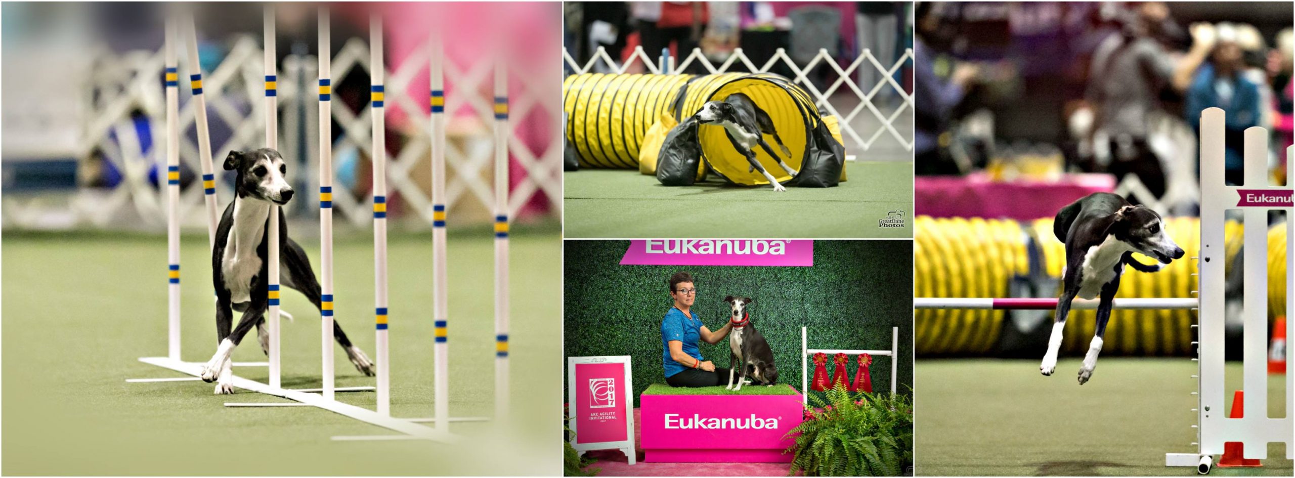 Splash! was a very successful show and agility whippet, piloted by his devoted owner Sharron Lane. Together, they achieved many great things and he was the FIRST ever Grand Champion and Master Agility Champion Whippet in AKC history.